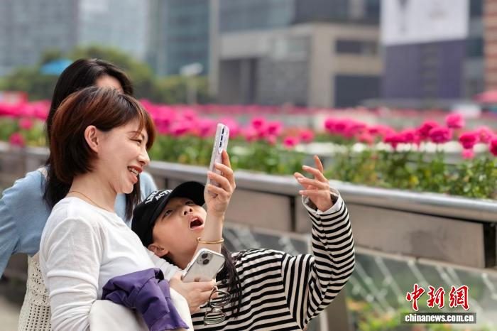 4月4日,上海陌头繁花谦枝,秋意浓浓,吸收了没有少市平易近乘客去到户中,正在踩青赏花中舒徐身心,乐享假日。图为:市平易近正在踩青赏花乐享假日。中新社记者 汤彦俏 摄