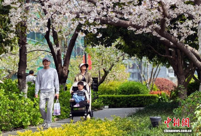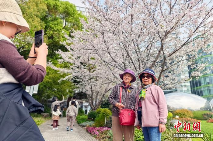 4月4日,上海陌头繁花谦枝,秋意浓浓,吸收了没有少市平易近乘客去到户中,正在踩青赏花中从容身心,乐享假日。图为:市平易近正在樱花树前开影纪念。中新社记者 汤彦俏 摄